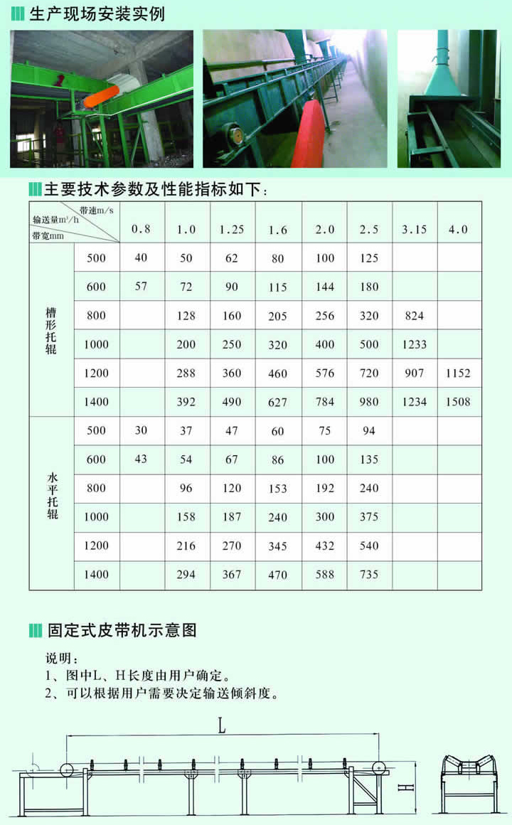 TDSG系列固定式皮帶輸送機(jī)運(yùn)用于糧食、化工、冶金、礦工、煤炭、港口等部門,用來輸送散裝物料及成件物品。該設(shè)備具有輸送量大、結(jié)構(gòu)簡(jiǎn)單、維修方便、成本低、通用性強(qiáng)等優(yōu)點(diǎn)。該產(chǎn)品可在環(huán)境溫度-15℃到40℃的范圍內(nèi)使用,可輸送物料的溫度在50℃以下,松散密度為0.5~2.5t/m3。