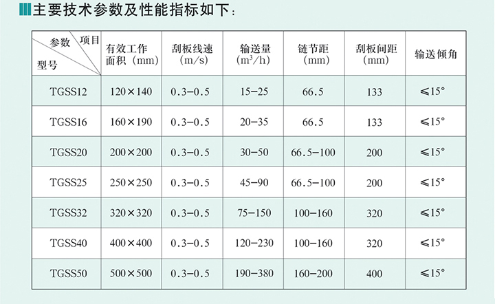 TGSS系列埋刮板輸送機常用于水平輸送顆粒和粉狀物料,亦能在15°角范圍內(nèi)作傾斜輸送。同時在單點進出料基礎(chǔ)上也可多點進料,多點出料。設備中采用高強度刮板輸送鏈、耐磨導軌,配有防堵和斷鏈停車位置。具有整機壽命高、運行平穩(wěn)、結(jié)構(gòu)尺寸小、輸送量大、能耗低、物料破損率低等特點,運用于糧食、糧油、飼料等行業(yè)和散裝物料部門。